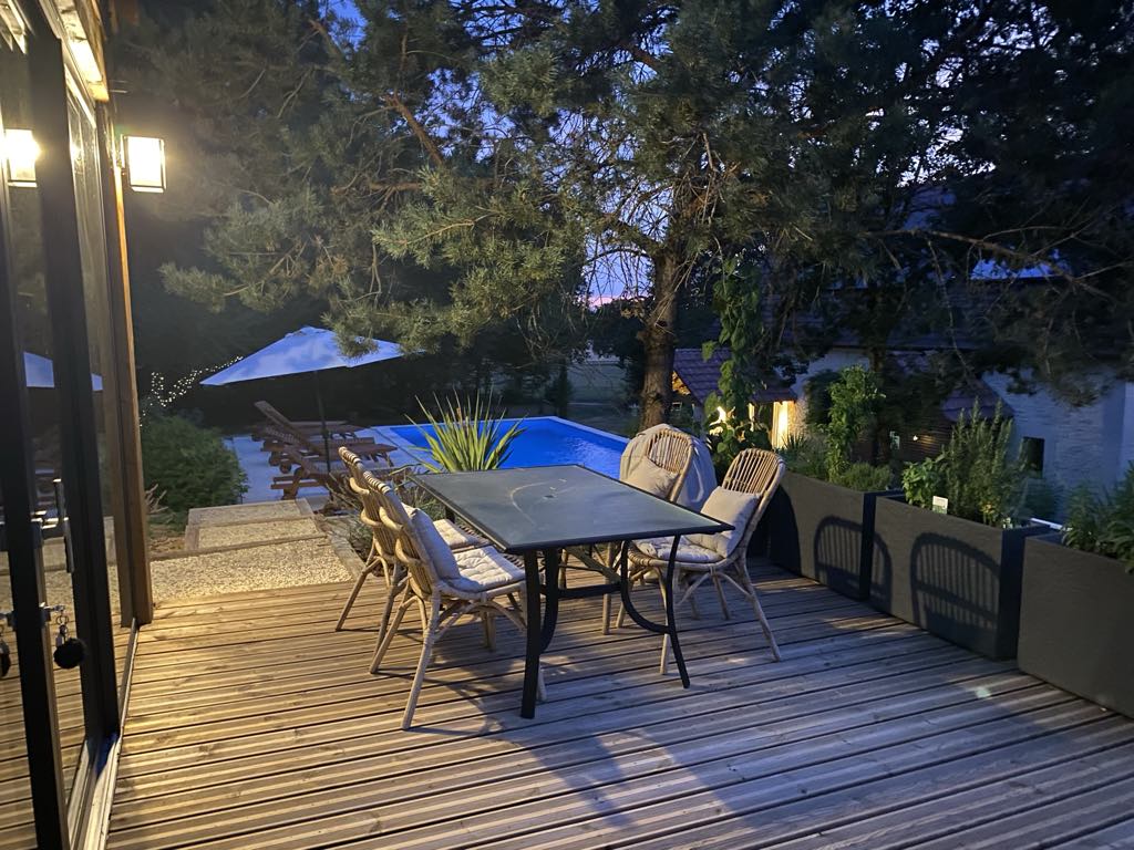 Un beau studio de 30m2 totalement indépendant de la propriété avoisinante. Avec une piscine partagée avec la propriétaire. Le studio possède un coin cuisine tout équipée, un coin repas et séjour, une jolie espace de nuit avec un lit de 160cm. La salle de bain est équipée avec un WC, lavabo et une douche italienne. La terrasse privée donne sur des vues dégagées de campagne. La maison du propriétaire est adjacente mais elle reste très discrète voir absente.