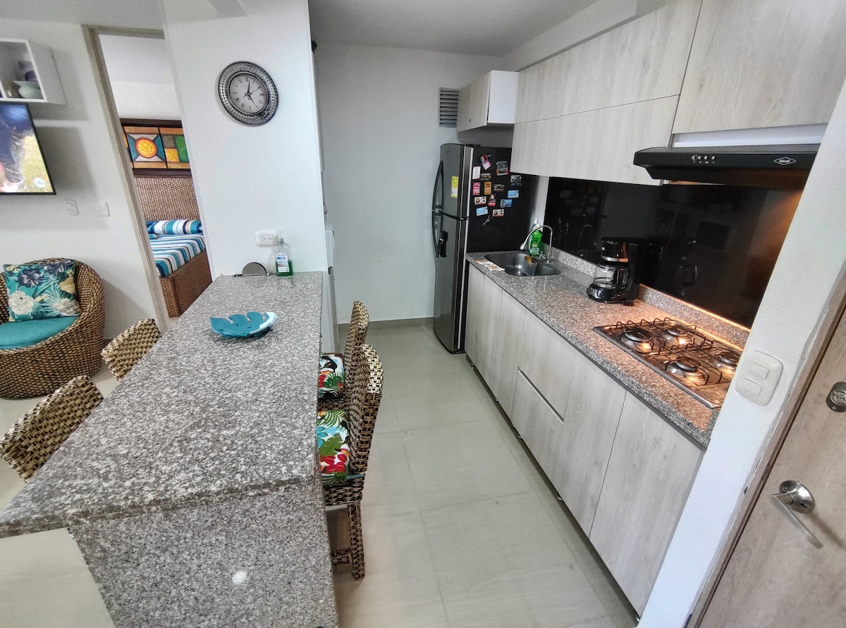 在Flanders, Tolima享受安靜的住宿或度假,距離Girardot 5分鐘。 這間豪華舒適的60平方公尺公寓設有泳池,為您提供完美的休息,遠離噪音。如果您想遠距工作或與家人共度時光,這是理想的選擇。距離Piscilago公園不到15分鐘路程。 您可以探索旅遊景點,享受大自然,同時不會失去所有服務的近距離。 放鬆身心、好好充電的理想度假勝地。