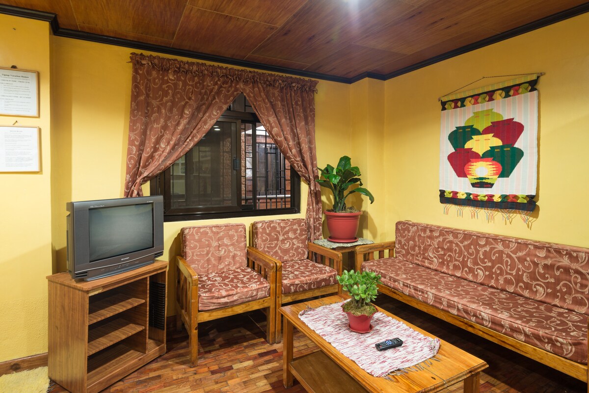 舒適的公寓,位於安靜祥和的區域,靠近著名的旅遊景點,如Minesview Park、Botanical Garden、Mansion House、Teacher 's Camp、Camp John Hay。 -開車 5 分鐘即可抵達 Rustan's Market Place (雜貨店)。 -開車 10 分鐘即可抵達 Session Rd、SM、碧瑤大教堂。 設備包括電視、高速 WiFi、雙門冰箱、電爐、微波爐、咖啡壺、電鍋、熱水淋浴、免費停車位和 24 小時保全服務。 來感受城市的涼風吧!