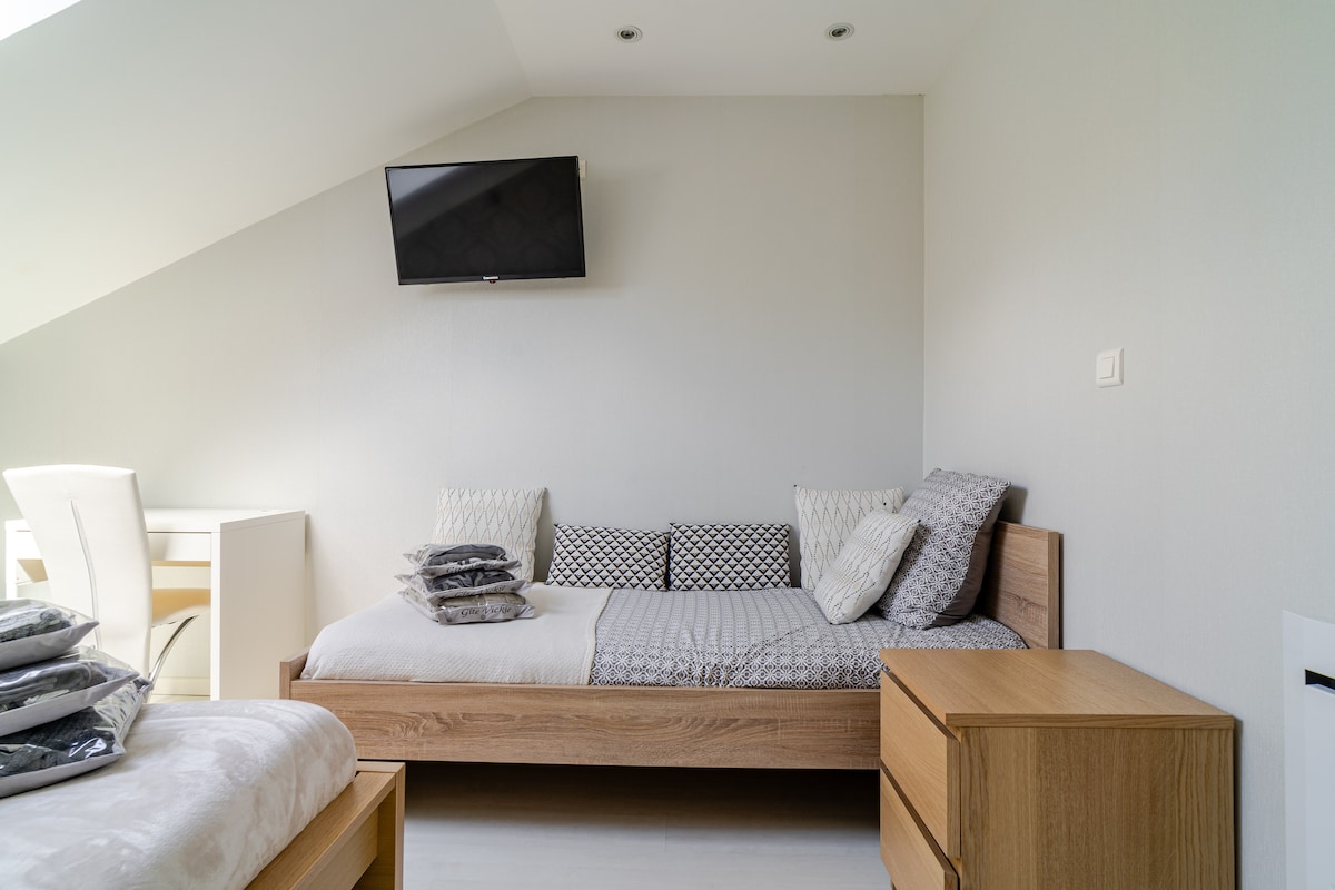 la chambre la salle salon est dans un style moderne il comprend une cuisine aménagée, une salle salon avec tv, une véranda avec tv, un terrain clôturée, une petite terrasse, a l’étage 2 chambres avec un lit double 140x200 avec tv, avec un lit bébé. animaux accepté sur demande préalable refaire le ménage a la sortie gite en campagne proche du souterroscope et des plages du débarquement 18 km de bayeux et de sa tapisserie et 20 minutes de caen 24 km de saint lo 95 km du mont saint Michel