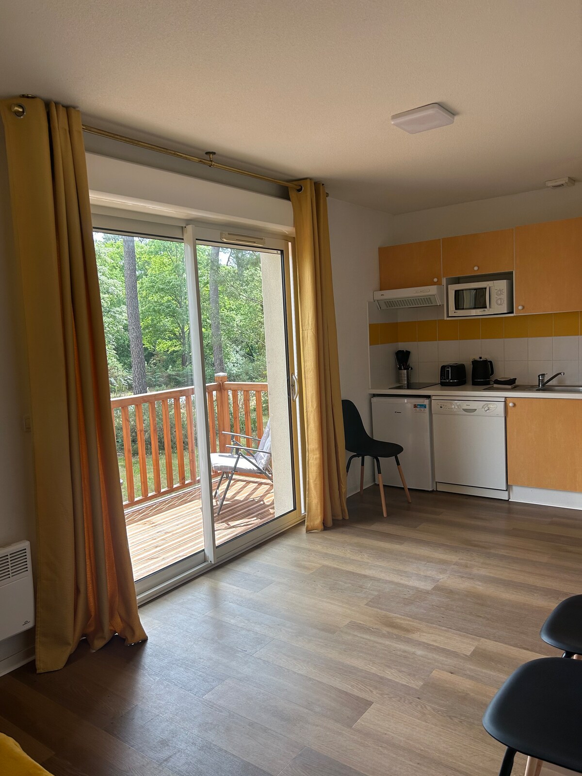 Take a break & relax in this cosy apartment with balcony on a peaceful gated holiday complex amongst pine trees, shared heated swimming pool & free parking. Situated on the edge of “Lac de Clarens” boasting its own sandy beach in the heart of 130 hectare forest. 5mins from the casino/bar/restaurant, golf course and equestrian centre. 5 minute drive to spa town city centre with restaurants, boulangeries, shops, bike rentals... towels & bed linen included Security deposit of 500 euros rqd