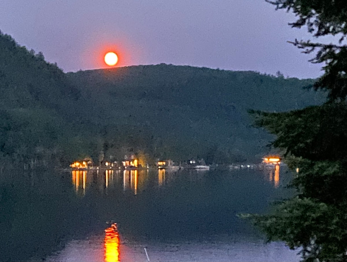 Help yourself to our hot chocolate bar with all the fixings (just bring your milk). Cozy up by the fire stove and unwind. Here, you can truly embrace the season: skate or ski on the lake, winter walks in the snow, or simply slow down. Savour the view from the deck, fire up the BBQ, stargaze from the dock, or enjoy the fully equipped kitchen, books, and games for quiet nights in. Just 40 minutes from Ottawa/Gatineau with easy, flat parking. AKA Chalet-Lac-McGlashan / Chalet sur des campeurs
