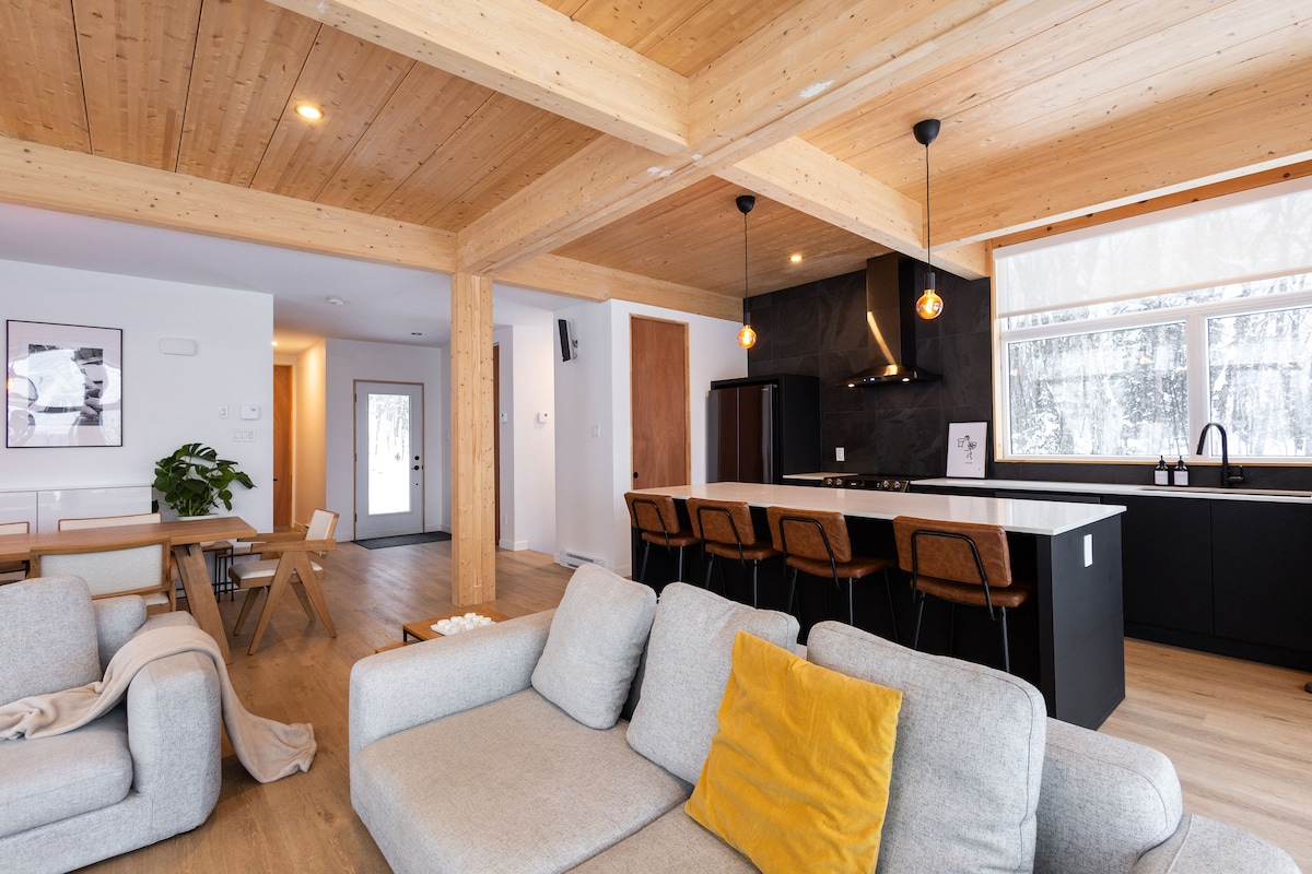 歡迎來到 La Khabine! 這間舒適、現代的小木屋配有您放鬆身心和與大自然連接所需的一切。 在燃木壁爐中享用一杯葡萄酒,伴隨著火焰噼啪作響的聲音。透過周圍的落地窗欣賞森林景觀。 在私人戶外雪松桶桑拿房放鬆身心。 天然自我護理產品、木柴、洗衣皂和高速Wi-Fi均免費。我們希望您會和我們一樣愛上我們的小窗戶小屋:)