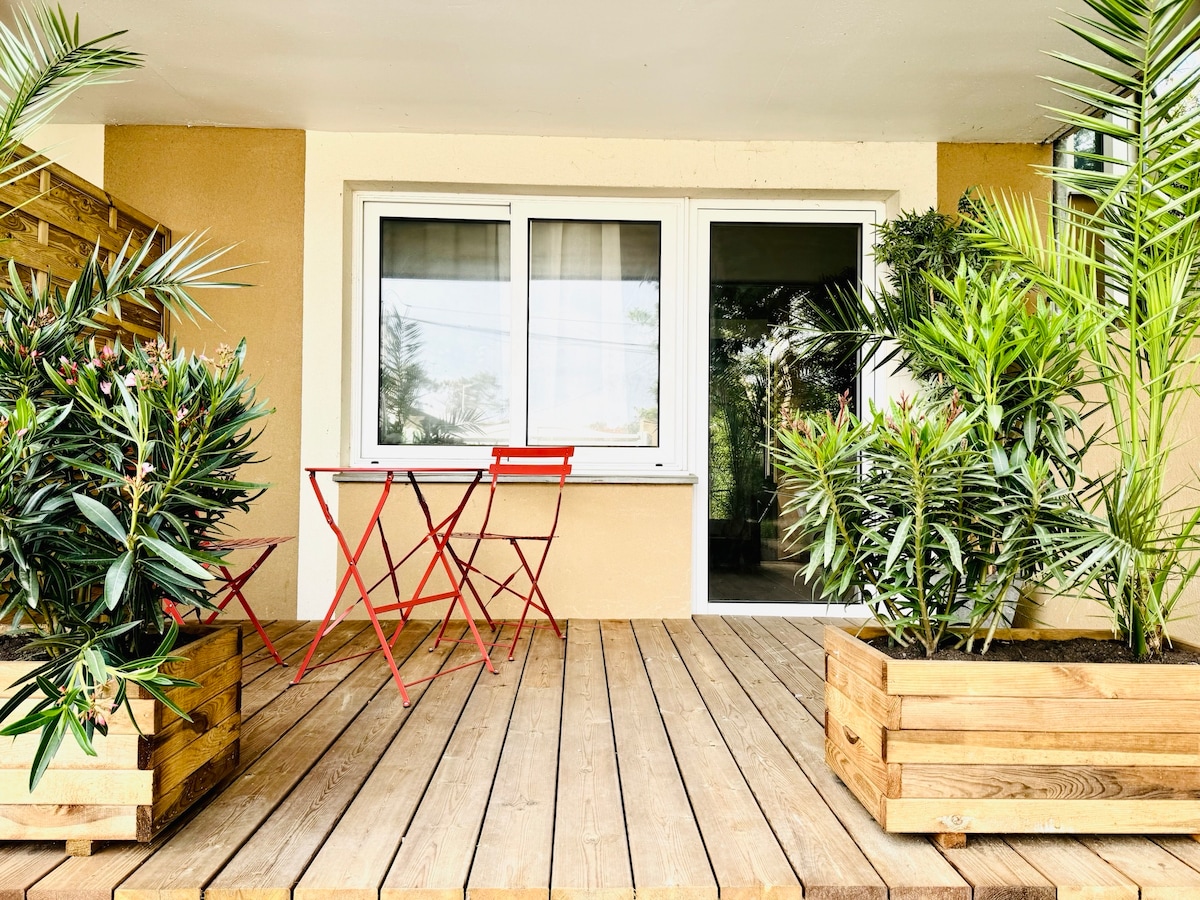 2023 年新建別墅內的明亮隔音單間公寓,設有獨立入口,專為尋求安靜氛圍、放鬆日常生活的人士而設計。在阿卡雄灣享受安靜祥和的環境,度過悠閒假期。 我們的別墅提供優質服務,迷人的單間公寓最多可容納兩人。 我們在阿卡雄灣與大海之間的費雷角 (Cap Ferret) 為您提供一個真實的環境。