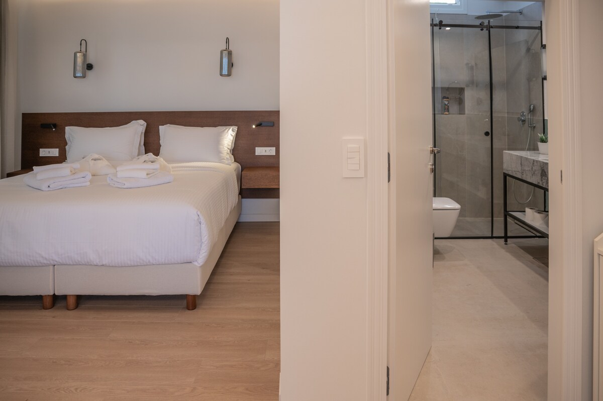 The Executive Suite comes with an independent entrance and two separate spaces, one of them being the comfortable bedroom with a double-size bed, and the other the cosy living room with a sofa-bed perfect for one more guest. The suite exudes a laid-back, warm and earthy atmosphere with modern decoration, perfectly complemented with a state-of-the-art bathroom and a kitchen area that has a small refrigerator. The suite is located on the 1st floor and can accommodate up to 3 guests.