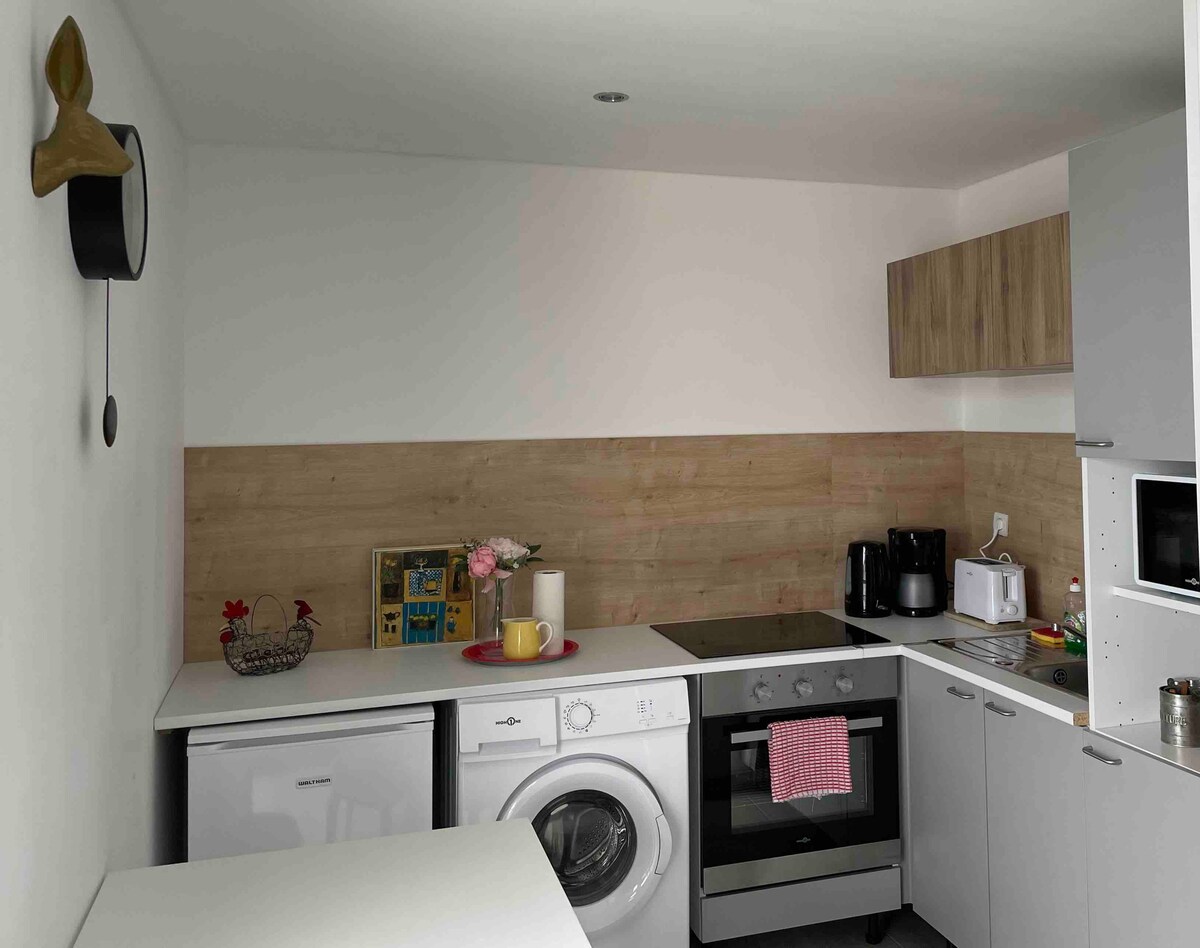 ● T2 entièrement neuf de 45 m2 dans petite copro ●Entrée autonome tres facile d'accès ● 1 stationnement privatif gratuit, si besoin possibilité d'en avoir un 2eme me demander. ●1 lit double 160 et 1 canapé convertible la maison du convertible pour accueillir 4 personnes max ...... ●vue sur jardin privatif ●environnement calme en campagne ●salle de bain avec baignoire ●machine à café dolce gusto ● si disponibilité possibilité d'arriver avant /partir plus tard 8€/ heure , me contacter avant .