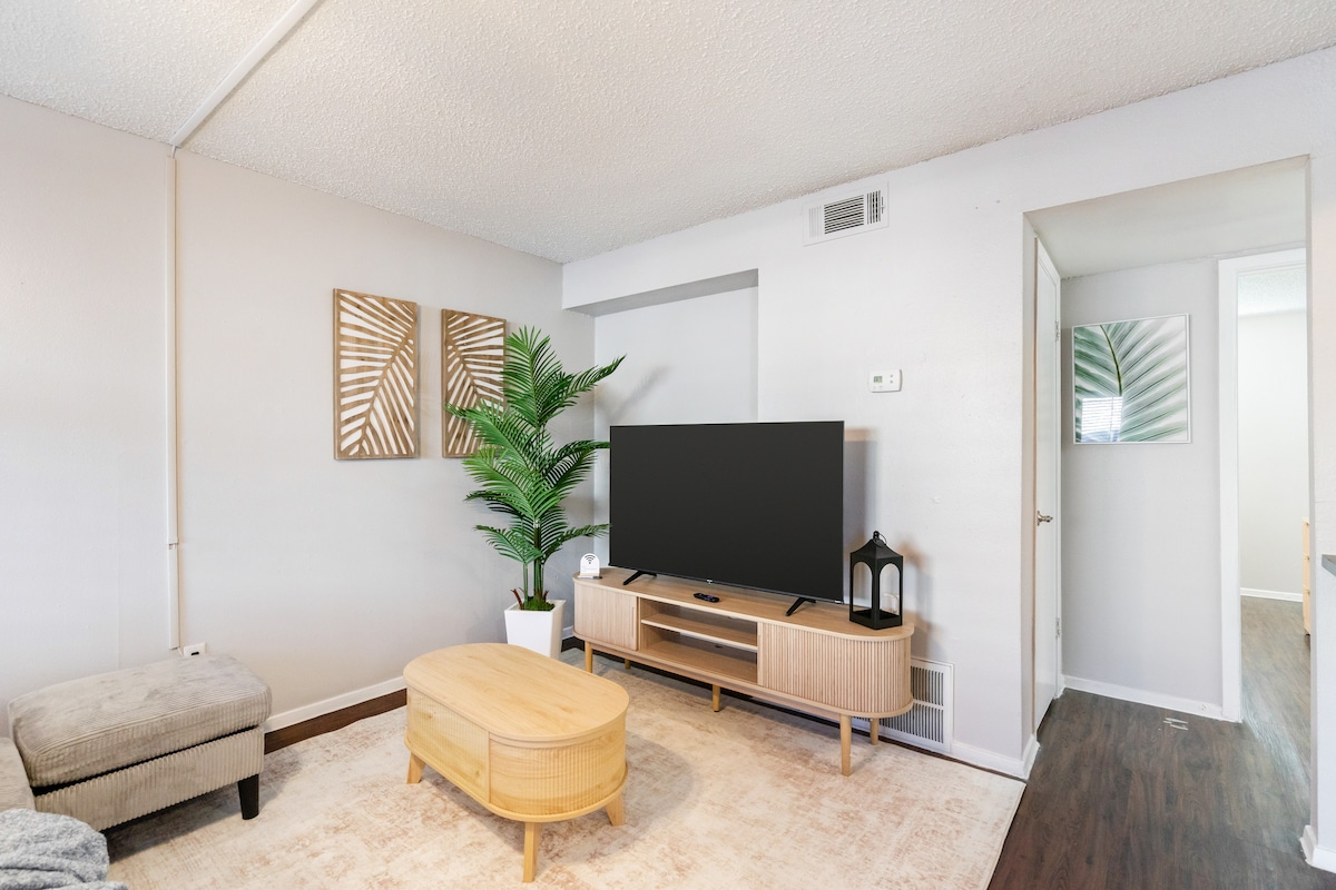 歡迎來到我們舒適的德州主題公寓,有1張床和1間浴室! 這個空間以德州復古裝飾和充滿活力的德州自豪感為特色,提供舒適和魅力。 享受配有80英寸電視、設備齊全的廚房和豪華加大雙人床的舒適起居空間,享受舒適的住宿。 現代化的浴室配備了所有必需品,公寓距離當地景點和市中心僅幾分鐘路程。 非常適合週末放鬆身心或長期住宿,是探索德州奧斯汀的理想家居基地!