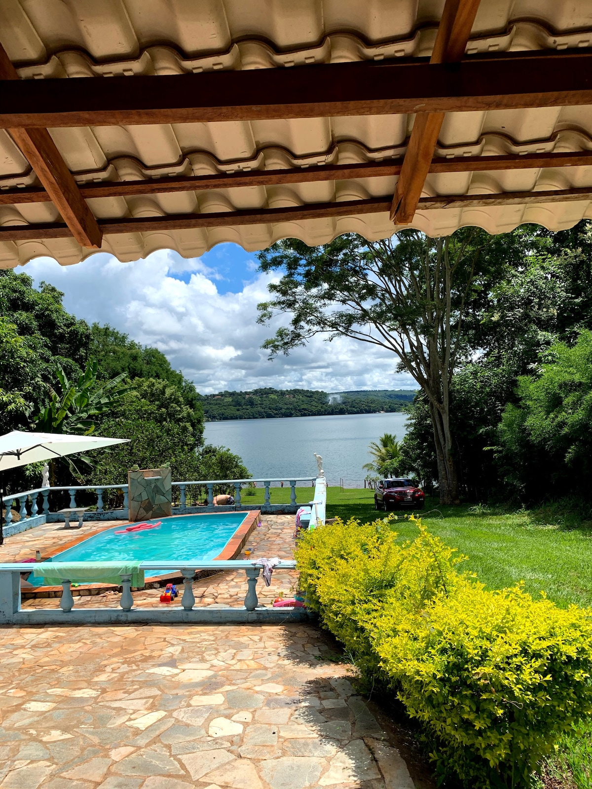 距離市中心10分鐘 在這個奢華、寬敞和安靜的地方忘記你的煩惱。 靠近湖畔小鎮Caldas Novas- Goiás的漂亮房子。 5間空調套房 附設獨立衛浴的洗衣房 設備齊全的大燒烤區 溫水泳池 備有洗衣機的洗衣機 ・微波爐和烤箱 內置音箱 電視+ Wi-Fi 安全的房子,整個私人區域都有電柵欄、Consertina和警報器。 戶外攝影機 可通往城市湖泊的坡道