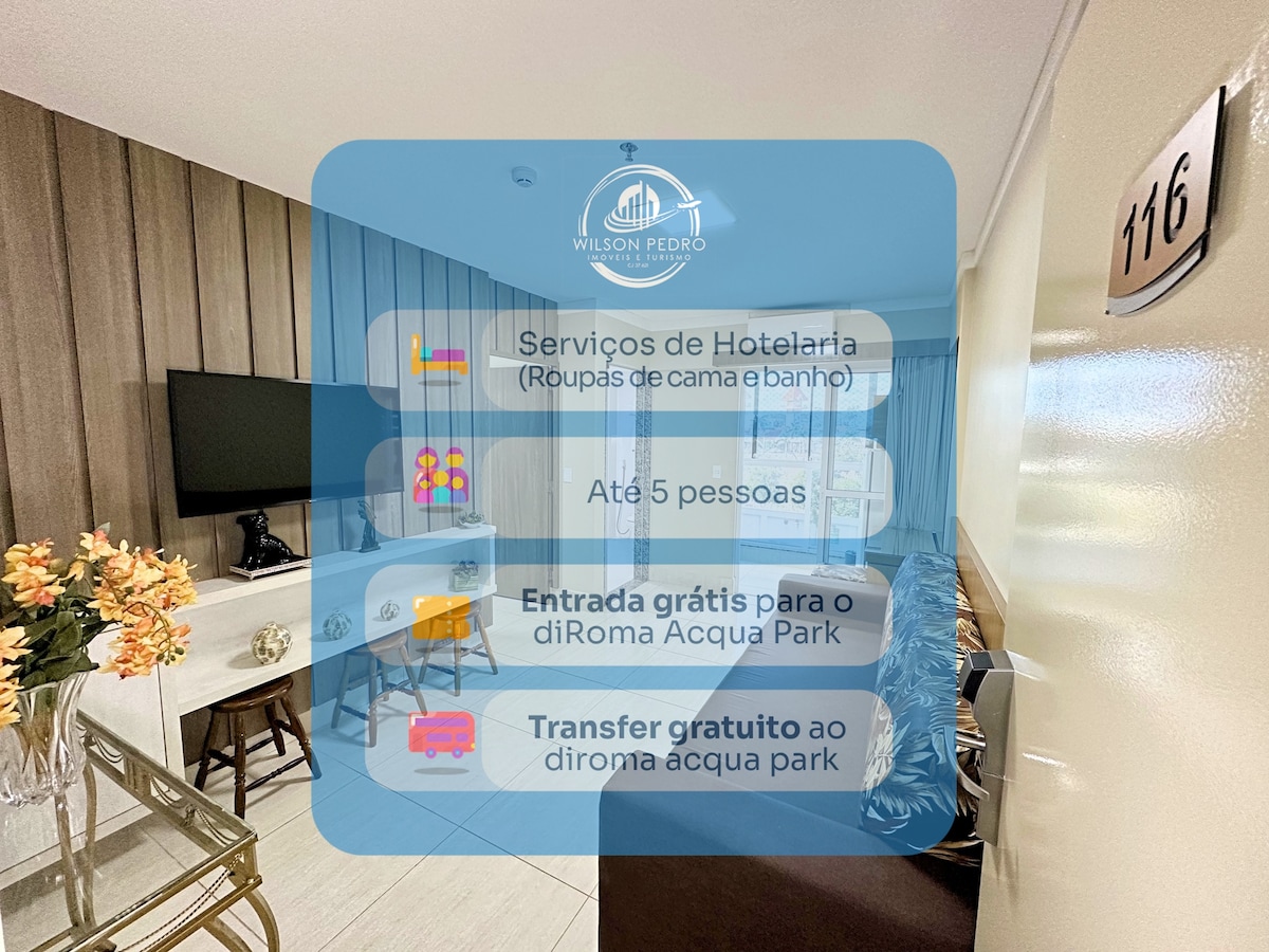Lacqua Diroma 3 一樓公寓🤩☀️💦 Lacqua Diroma 水上公園(Jardins Acqua Park-24hs,廣告照片中的公園,位於 Lacqua Diroma 前面)的入場手環費用為每人 R$10.00。 只需支付 1 次。 最多 5 人。(任何年齡的兒童都計為一人) 公寓配有齊全的廚房、套房內的雙人床、客廳內的雙人床和供第五位房客使用的單人床墊。 不包括床單和浴巾。 diRoma splash門票可享受30%的折扣💦