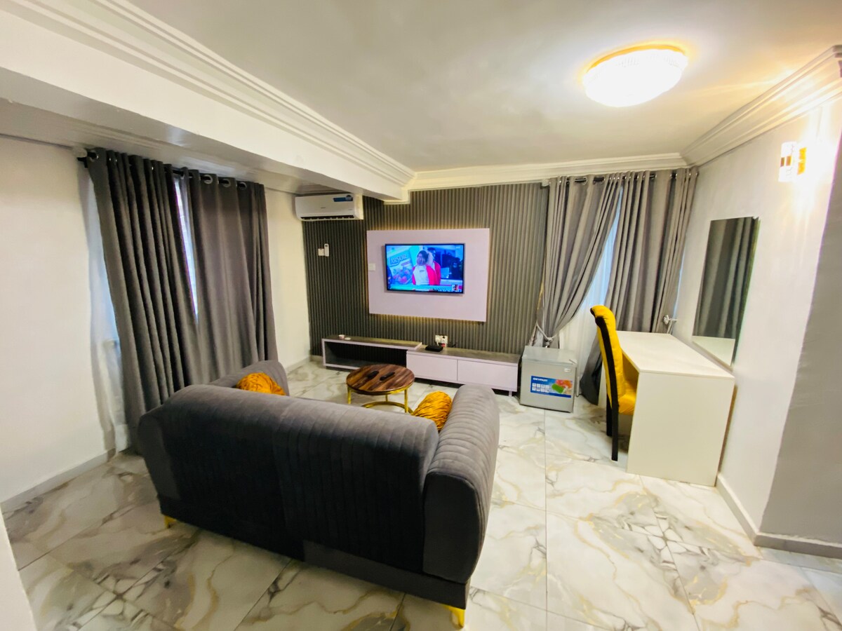 這間優質的房源空間寬敞,可以帶著全家老小一同入住,並在我們的2間臥室公寓享受寧靜的住宿。位於Lekki一個寧靜且適合家庭入住的房源。 這間寬敞明亮的房源配有廚房:微波爐、冰箱、平面電視、大型起居區、2間帶淋浴間的浴室和3間廁所。 公寓還提供免費WiFi、24小時電源、頂級安全、洗衣機、免費停車位、SUV汽車,可供私人使用,需額外收費(提供司機)