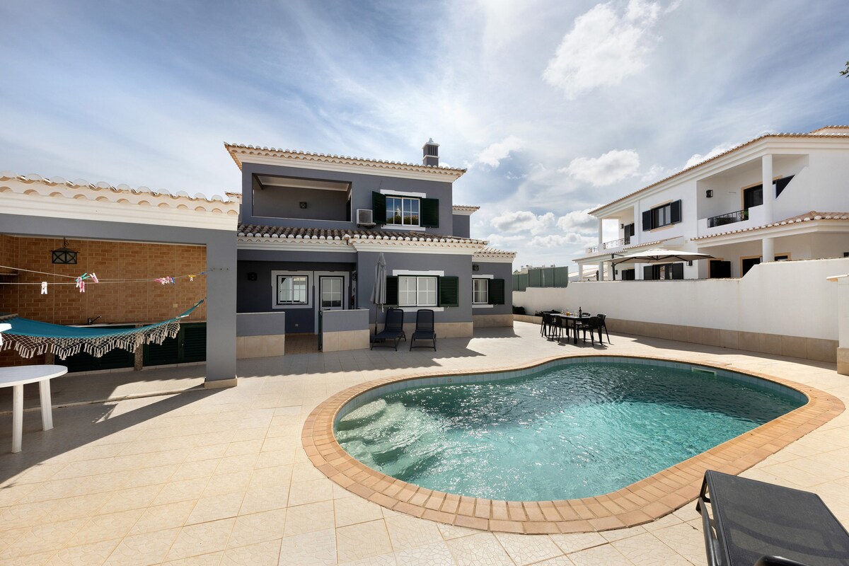 Casa Child friendly, totalmente equipada com 3 quartos, 2 casas de banho, cozinha, casa de jantar e sala de estar com vista e acesso para o pátio e piscina. BBQ e mesa para refeições ao ar livre e ainda terraço para banhos de sol. Piscina com grades, por isso é o local perfeito para férias em família com crianças. Pequeno almoço e transfer de/para aeroporto (custo adicional) Estacionamento privado Ar condicionado, wi-fi 1000Mb/s, smart tv, Netflix welcome drink. Beauty & wellness experiences.