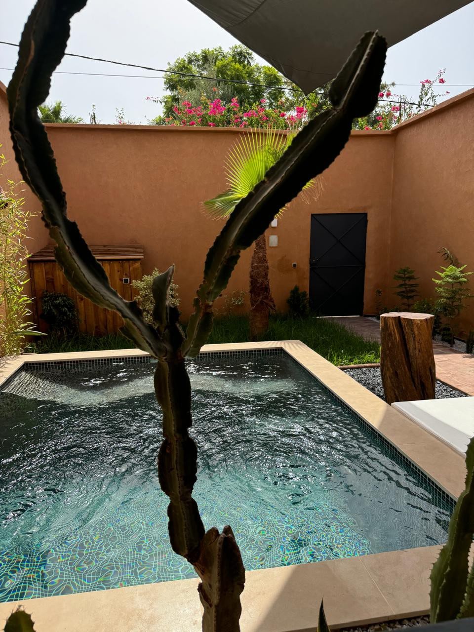 馬拉喀什的私人庭院,最多可供 8 人入住,有 3 間舒適的臥室,每間臥室都有私人浴室、3 間傳統的摩洛哥休息室、明亮而寧靜的露臺、陽光明媚的露臺,非常適合放鬆身心,以及四周環繞著樹木的泳池。 步行僅2分鐘即可抵達Almazar Mall,靠近最好的餐廳,開車6分鐘即可抵達著名的Jemaa El-Fna廣場,開車8分鐘即可抵達機場。 保證讓你享受寧靜、舒適和真實的體驗