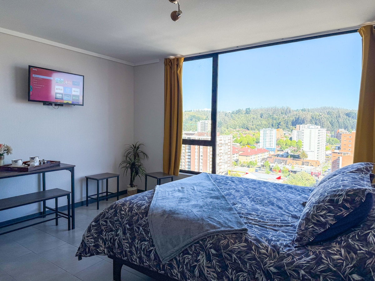 位於15樓的現代1間臥室公寓,可欣賞康塞普西翁(Concepción)全景和獨特的日落🌇。 明亮舒適的空間,非常適合放鬆、工作或長期住宿。 配有舒適的客廳🛋️、設備齊全的廚房👩🍳、快速WiFi🛜、可收看Netflix/Disney +📺的電視和雙人床🛏️。 位於市中心,距離市中心、大學、餐廳和公共交通僅幾步之遙🚍。 2 晚以上🔔自動折扣 😌
