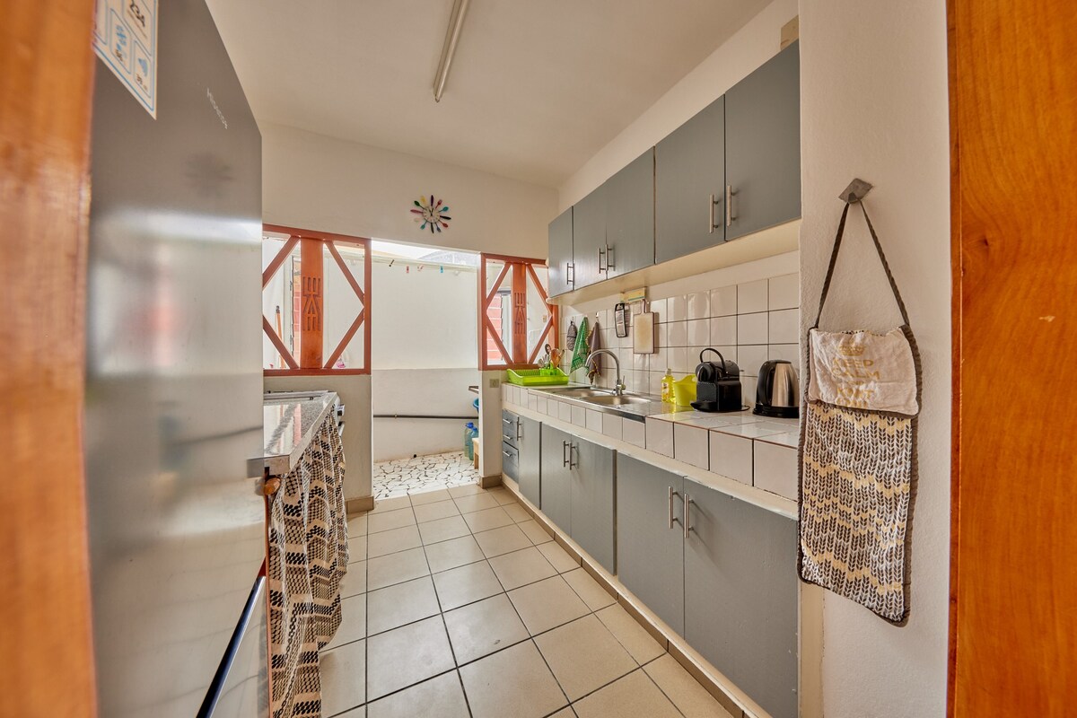 ✅️ Top 10% most loved homes on Airbnb. ✅️ Free daily cleaning. ✅️ 24-hour security. Enjoy an elegant and centrally located accommodation in the heart of the city and immerse yourself in the cozy atmosphere of this charming three-bedroom apartment in Zone 4. Good vibes are celebrated in a harmony of art, music, and gold, where softness and light les tableaux ont étés peints par moi même et les meubles dessinés par mes soins.