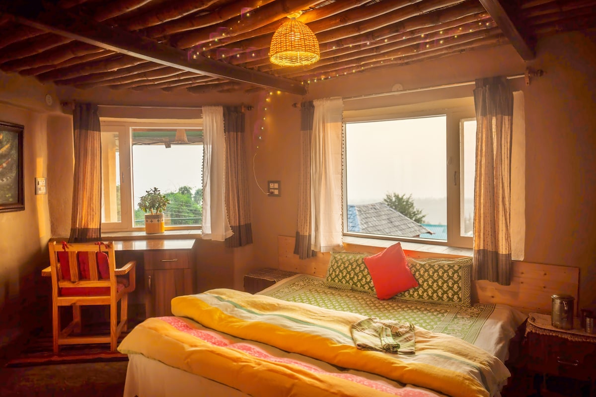 體驗3間BHK小屋套房,坐落在雄偉的山脈中心! 套房擁有三間寬敞的臥室、設備齊全的廚房、餐廳和起居區域。 我們的空間融合了當地的Pahadi建築和現代風格,為客人提供獨特舒適的體驗。 從空間可欣賞迷人的山景,房客可以在大自然的寧靜中放鬆身心。 非常適合家庭、一羣朋友和情侶體驗山脈。