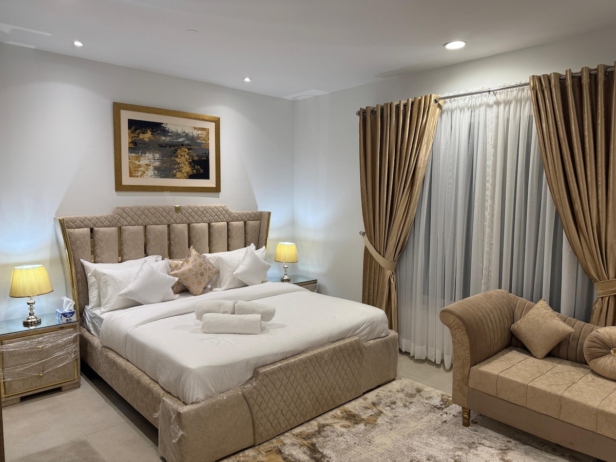 適合大家庭、情侶、獨行旅客或年輕企業家的現代空間。房源配有舒適的臥室和浴室、設備齊全的廚房和全景窗戶,可欣賞無與倫比的城市景觀。 大樓內有一個維護完善的郁郁葱葱的綠色公園、慢跑道和一個大型購物中心。 此房源位於DHA Phase 5 (國防住房管理局)的中心,步行5分鐘即可抵達一個大型商業市場,有所有知名的飯店品牌。