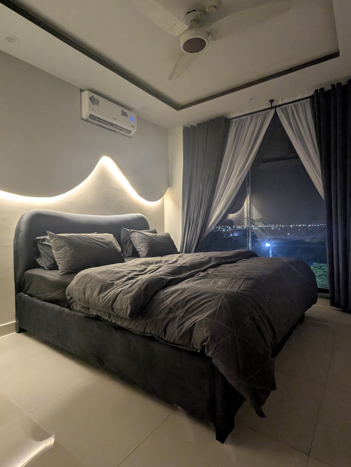 我們位於DHA Phase 5的1居室公寓是城市時尚與天體冷酷的交會處。 像是:適合拍深夜自拍照的月光牆,以及堆滿鈔票的藝術品,散發著「主角的能量」 從私人陽臺的鞦韆上醒來,欣賞公園景觀,在50吋4K智慧電視上觀賞您最喜愛的節目,或在設備齊全的設計師廚房中烹飪美食。 室內裝潢?抽象、時尚,專為美照而設計。 此外,你就在拉合爾最熱門的餐廳旁邊。