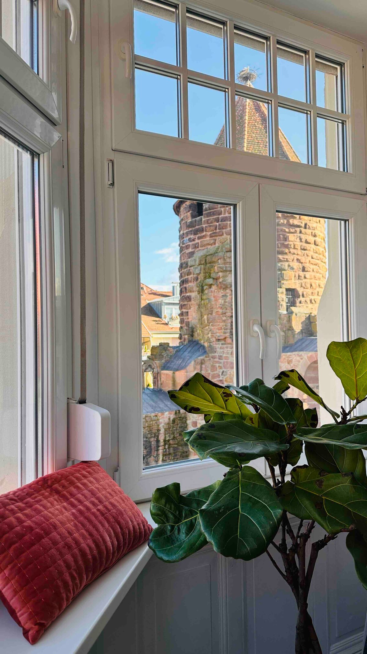 舒適的小閣樓公寓,位於雙戶型連棟房屋中 40 平方公尺, 1 張雙人床 140 x 200 公分 1間客廳、1間浴室 1間設備齊全的廚房 市中心/老城區步行10分鐘 對面有城市公園 露台浴池戶外游泳池步行10分鐘