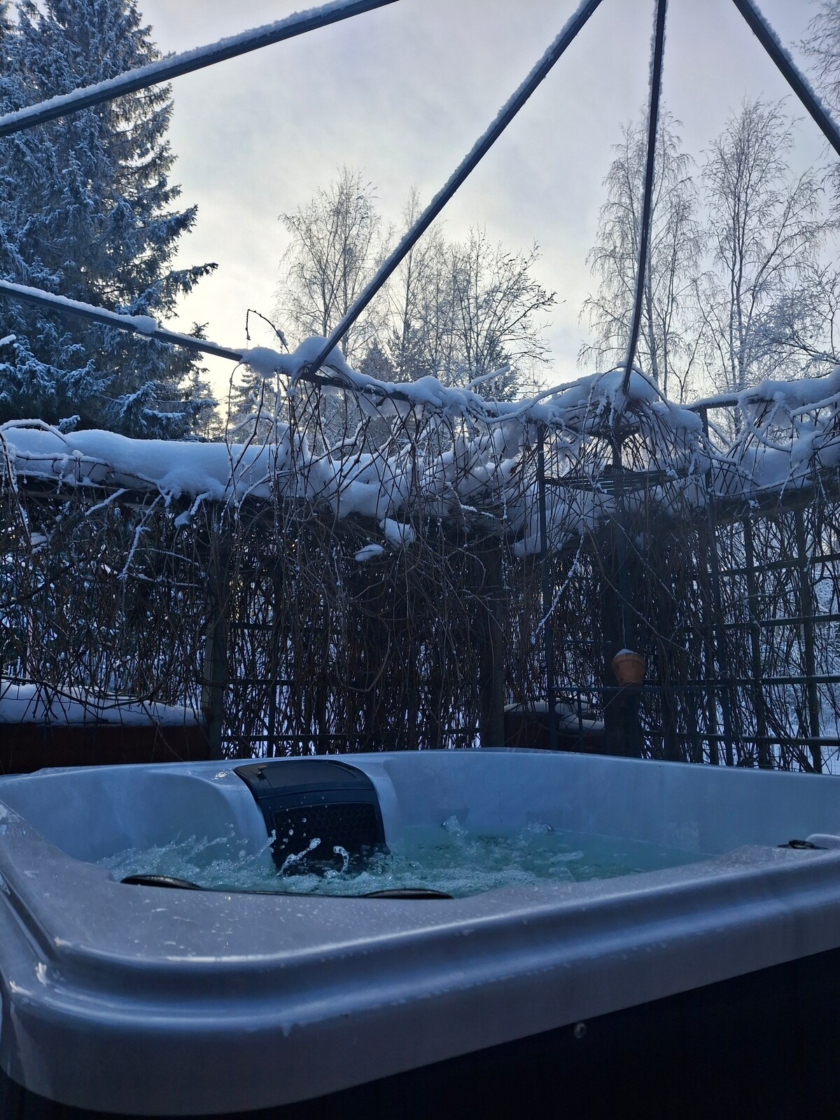 冬天,湖水不太好! 小屋在幾個小時內加熱,有小青蛙。 全家人都有很多好玩新鮮事。 您可以在露臺上享受桑拿房,也可以享受從下午的陽光到日落的許多氛圍。 你可以使用2個浴缸和一個水上蹦牀。 小屋可容納4-6人,桑拿大樓內有兩人睡覺。 小屋和桑拿房有電和攜帶水。 還有一個帶桑拿/浴缸的水泵。 後院有2間浴室。Lake: Joutsjärvi.