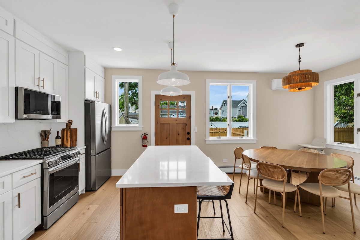 位於紅岸市中心的寬敞殖民地4BR/3浴室。步行即可抵達火車站、Molly Pitcher、Oyster Point和最棒的餐廳和酒吧。可容納9人。全功能廚房,開放式餐廳和酒吧區。戶外烤架、火坑和休息區。1樓:1間臥室、全套浴室、客廳、帶小床的日光浴床、廚房、餐廳、洗衣房。2樓:2間臥室,配有雙人床。1間臥室配有雙層床。2間全功能浴室。快速Fios WiFi和有線電視。前門廊和院子。