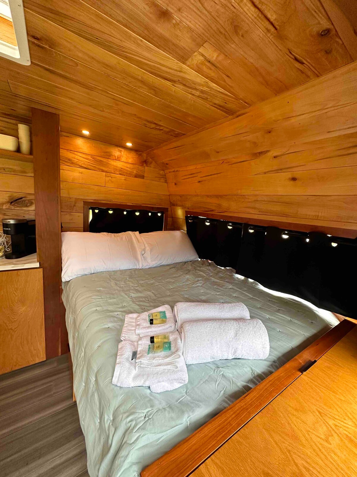 歡迎來到我們的改裝露營車,舒適與冒險在此交融!這個時尚的綠洲在車輪上提供現代化的設備與服務和鄉村魅力的完美融合,使其成為情侶或獨遊旅客的理想度假之選。 室內有一張舒適的全尺寸床、廚房內有花崗岩櫃檯,吧台座位非常適合享用早晨咖啡或快速小吃。我們的露營車配有全尺寸淋浴間和馬桶,確保您在旅途中享受如家一般的舒適!