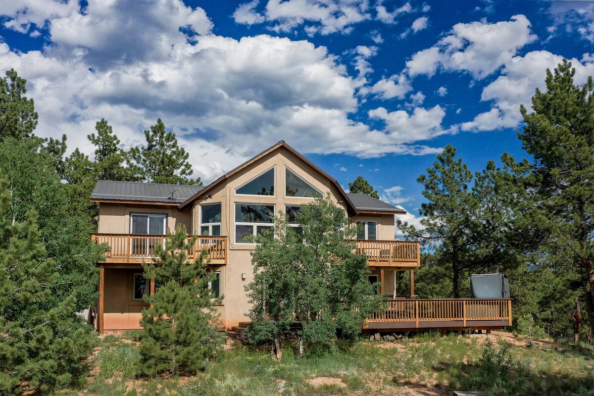 舒適的2間臥室2間浴室小木屋,坐落在1.5英畝的樹林中。 環繞甲板上的景觀都很棒。 舒適的起居區,配有木壁爐和完整的廚房和洗碗機。 主臥室的1.8米寬雙人牀,主樓層的臥室和走廊外的Jack和Jill浴室。 地下室有第二間臥室的雙人牀和浴室。 有一個電視區域,配有拉出式沙發,步行到後面。 靠近城鎮,距離約3英裏。 距離Cripple Creek鎮約10分鐘路程。 在該地區釣魚、徒步旅行。