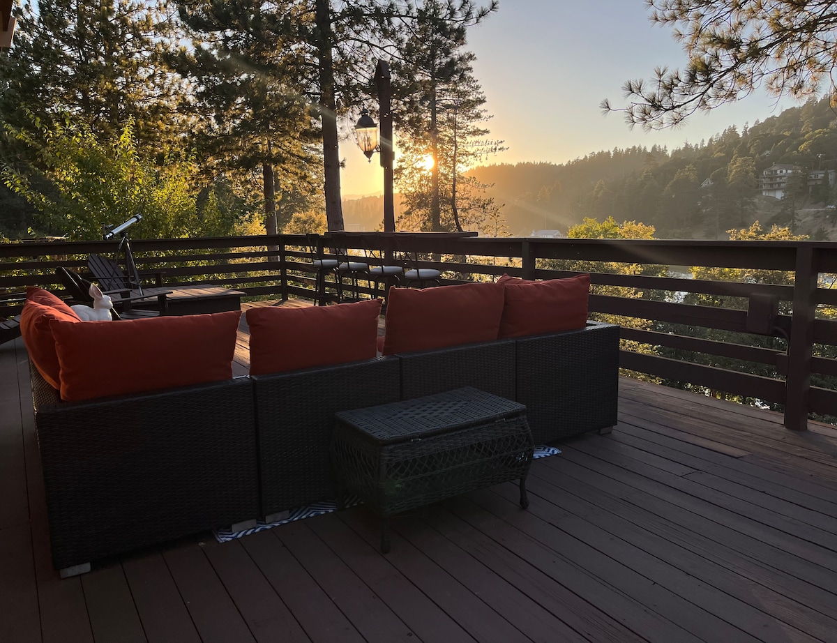 歡迎來到這個明亮通風、全面翻新、精心維護、現代化的山間小屋,位於湖畔小鎮克雷斯特萊恩(Crestline)。 從各個角度浸泡在自然光中,落地窗從舒適的客廳中欣賞美麗的山景。 走到樹上方的寬敞前甲板上,品嚐晨間咖啡。 每間客房都有加大記憶泡綿床墊。步行5分鐘即可抵達格雷戈里湖(Lake Gregory),開車15分鐘即可抵達箭頭湖(Lake Arrowhead)。