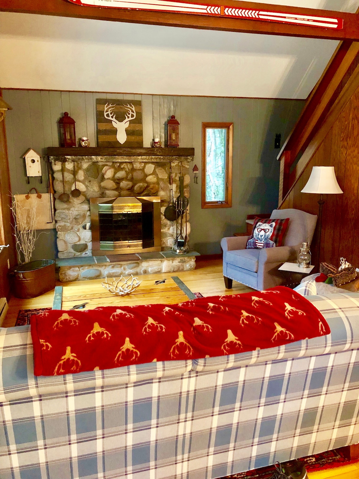 經過漫長的一天冒險後,在兩個壁爐之一旁溫馨舒適。 這間舒適的小木屋坐落在哈莫尼湖附近的樹林中,距離滑雪勝地、水上公園和私人湖泊海灘幾分鐘路程。 這間小木屋是戶外冒險的優秀家居基地,如登山、騎自行車、滑雪板、滑雪板、滑雪管和釣魚。 這是放鬆身心,與快節奏世界脫穎而出的完美場所。 孩子們在外面玩耍時,您可以在大甲板上享用燒烤。