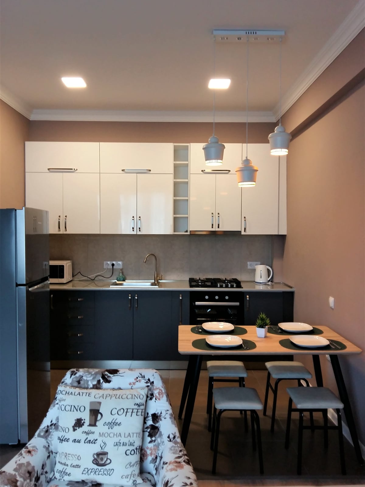 體驗舒適現代化的單臥室公寓的魅力,精心設計,提供舒適和便利。 每個細節都被視為打造一個溫馨的度假勝地,配備了所有必需品,讓您輕鬆入住。 位於Central Saburtalo充滿活力的街區,您可以輕鬆前往許多餐飲選擇、娛樂場所和購物區。