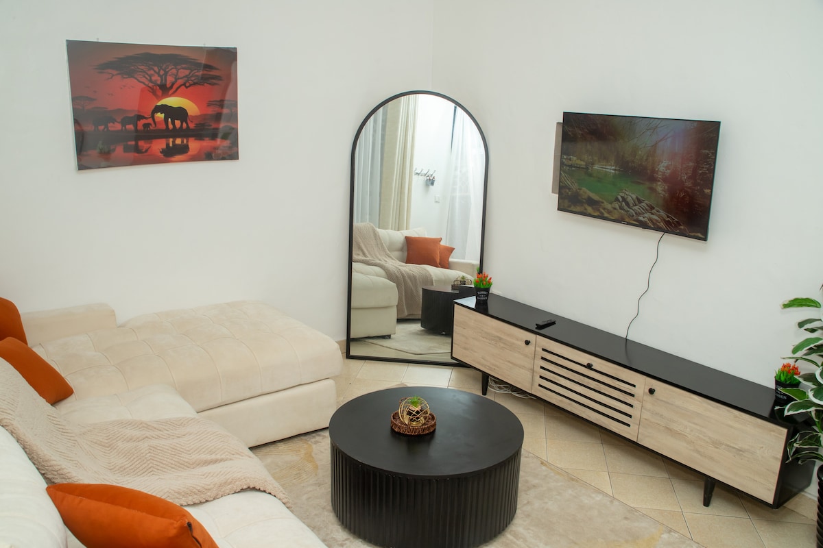 在這間時尚現代別墅與全家一起共享天倫時光,位於Nakuru市中心附近的安全位置。 有一個電源備份系統。別墅有四間帶陽臺的套房臥室,樓上還有一間額外的房間,可用於娛樂/放鬆/電影房-它有一個大螢幕。 對於有小孩的家庭,有一張嬰兒床。 配有75吋智慧電視和WiFi。還有Netflix。