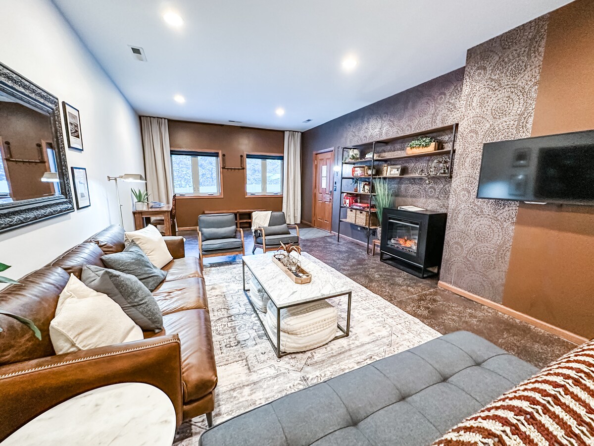 歡迎光臨!這間舒適的兩房套房配有壁爐和按摩浴缸,就坐落在 Summit Avenue 正下方,毗鄰 West Seventh 和 Grand Avenue。 步行即可抵達當地餐廳、Grand Casino Arena 和藝術中心。 * 大賭城競技場:步行 10 分鐘 * Ordway:步行 15 分鐘 * 步行不到一英里即可抵達多家餐廳/啤酒廠。 * 搭乘機場地鐵 54 號線前往市中心。8 英里 這間套房位於 Lako'tyapi 土地和 Wahpekute-Octi'Sakowin Oyate 領地上。