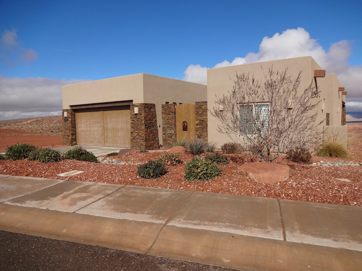 Welcome to the center of the Grand Circle! The Lake Powell Adventure House has the world's most spectacular canyon views & jaw-dropping sunsets! Rest assured it's sparkling clean! To ensure your safety, a crew sanitizes and cleans between each visit. The PRIVATE ENTRY 3-bed/2-bath suite is walking distance to downtown restaurants and a short drive to antelope canyon, Horseshoe bend, Wahweap & Stateline Marinas. Try Kayaking, E fat-tire mt. bikes, hiking, & sight-seeing fishing boat trips!