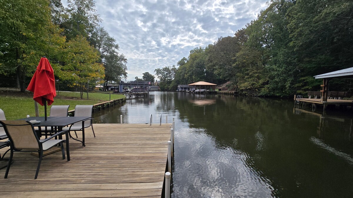 >>觀看我們的IG影片,了解更多@anchorsaway_lakesinclair << 翻新、寬敞的房源,在辛克萊湖(Lake Sinclair)的深水區,有充足的戶外空間。3間臥室、2間浴室+標準雙人床拉出式沙發,可舒適睡8人。享受我們的皮艇、槳板、游泳墊、釣具。將您的船停在附近的雙子橋碼頭(Twin Bridges Marina),並停在我們的碼頭。 在玩水後,泡在按摩浴缸中,在烤架上烹飪,在火坑上烤零食,玩沙包遊戲。