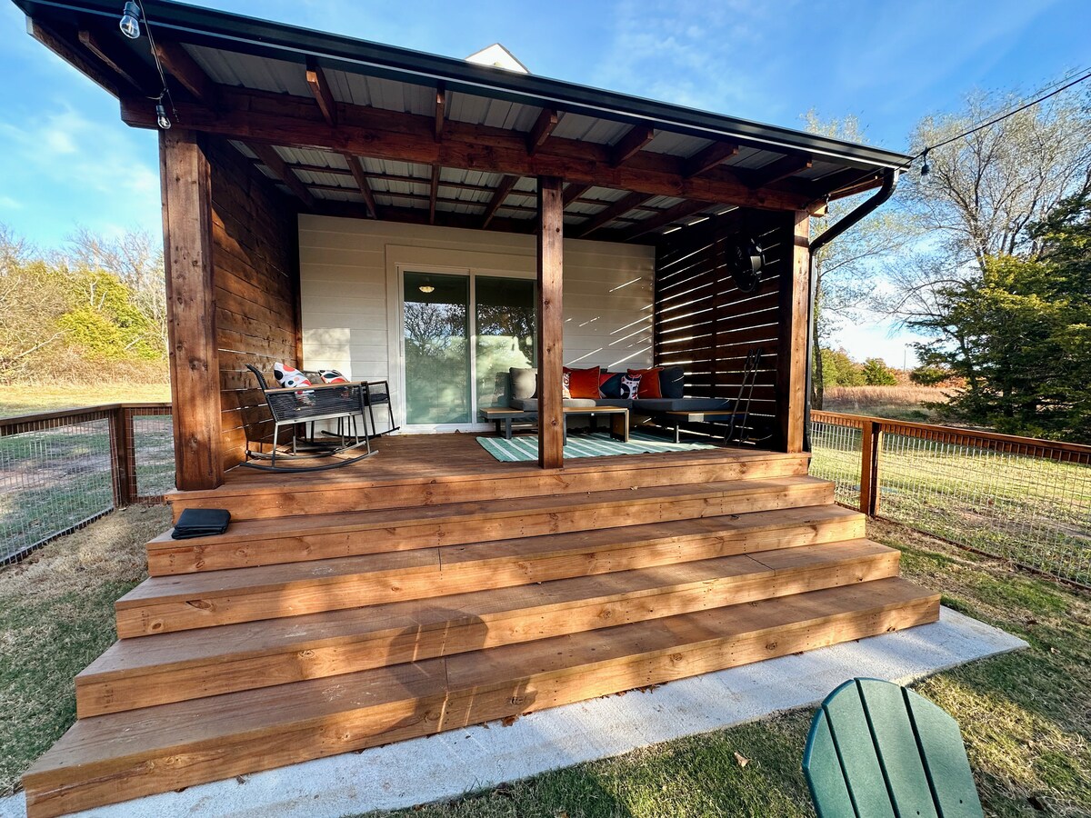 享受5英畝的寧靜環境,配有庫存豐富的釣魚池。1間臥室(額外的皇后墨菲床)/1.5間浴室,配有洗衣機和烘乾機,可供長期住宿。如果與團隊一起旅行,靠近當地的球場。光纖WiFi、電視、全功能廚房、加大雙人床、家具齊全和新增的龍捲風避難所。提供插頭以連接您的電動車充電器。我們的房源不斷改善。我們很樂意與他人分享我們的一小片天堂!歡迎攜帶寵物,需支付適用費用。