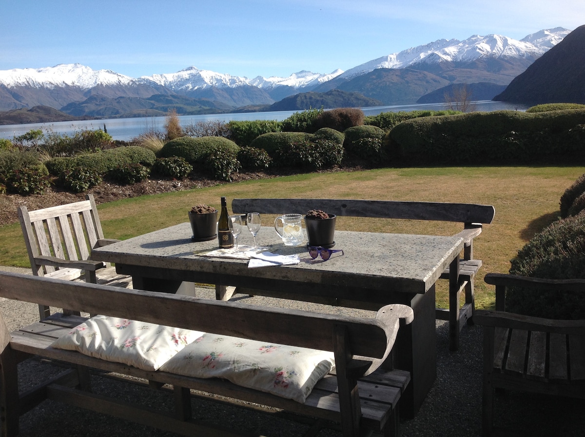 在這個私人、寧靜的花園度假屋醒來,享受自製美食,距離瓦納卡湖僅幾分鐘路程。 這間住宿由美食家出租,以舒適、地理位置和豐富的美食而聞名。 您寬敞的超大床房可通往花園和樹木,創造出平靜的精品風格度假勝地。 高線數亞麻布、雲狀無過敏床墊套、紐西蘭羊毛地毯、冬季電熱毯、熱泵和現代套房。 預訂第一晚的拼盤,放鬆身心!