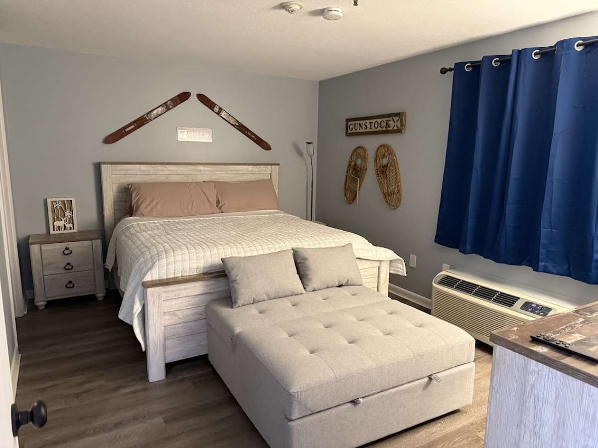 This beautifully renovated resort condo is a perfect getaway for up to 4 guests. Located at the base of Loon Mountain’s South Peak, amidst the White Mountains of New Hampshire, guests can immerse themselves in nature’s beauty during romantic hikes and a variety of other awe-inspiring outdoor activities. Enjoy delicious food at nearby restaurants, and take advantage of the resort’s two swimming pools and Jacuzzi for rest and relaxation. Relax by the Pemigewasset River in the back of our complex!