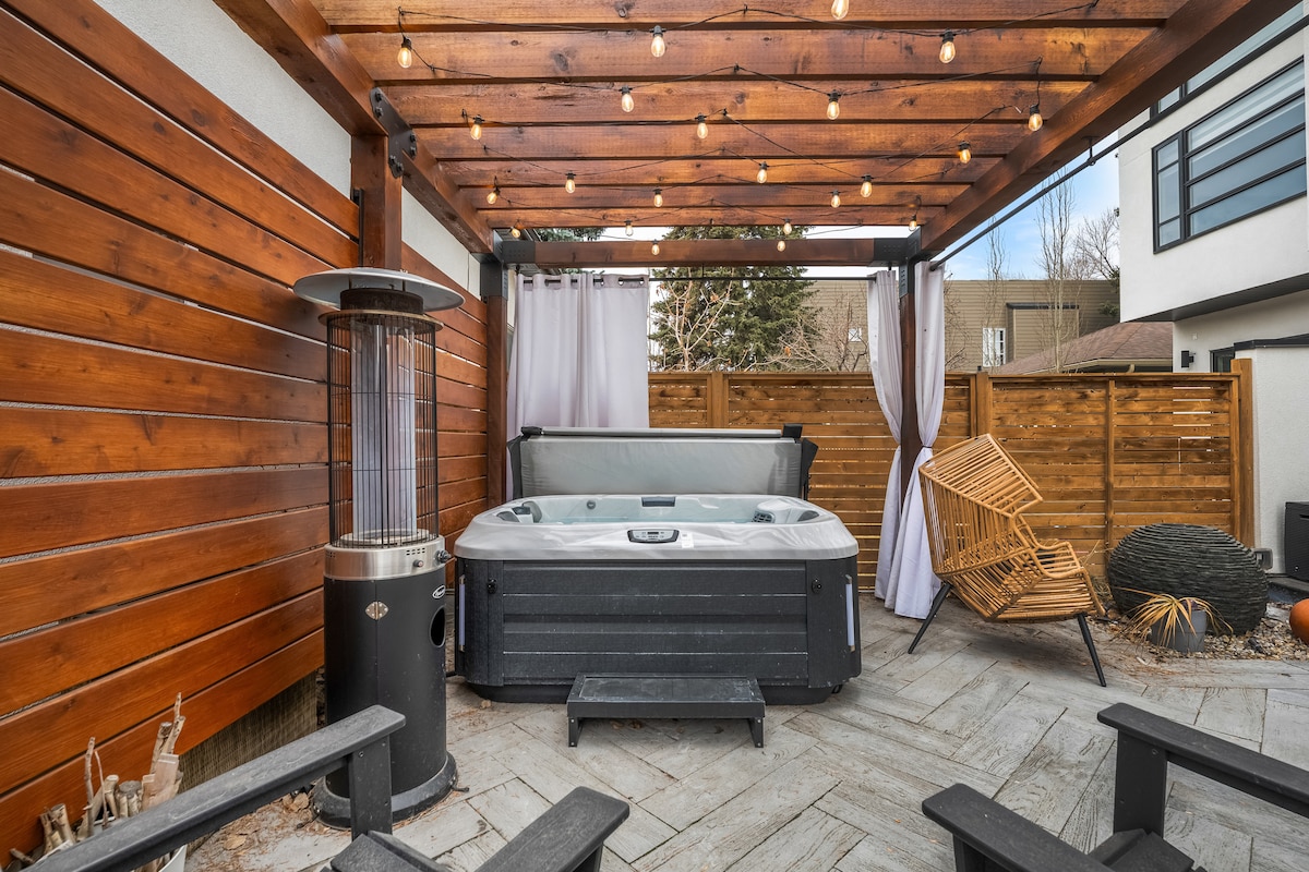 歡迎來到您的私人聯排別墅,為您的團體提供三種舒適度。 位於滑板車區內,靠近其他景點,如:史丹利公園、教會區、大麥帶、牛仔節場地等。 此房源提供兩間主臥室,每間都有自己的套房、59吋智慧電視和加大雙人床。第三個睡眠空間位於客廳(沙發床)。 對於大型團體,我們提供單人床。 兩個露臺是欣賞日出的好地方。