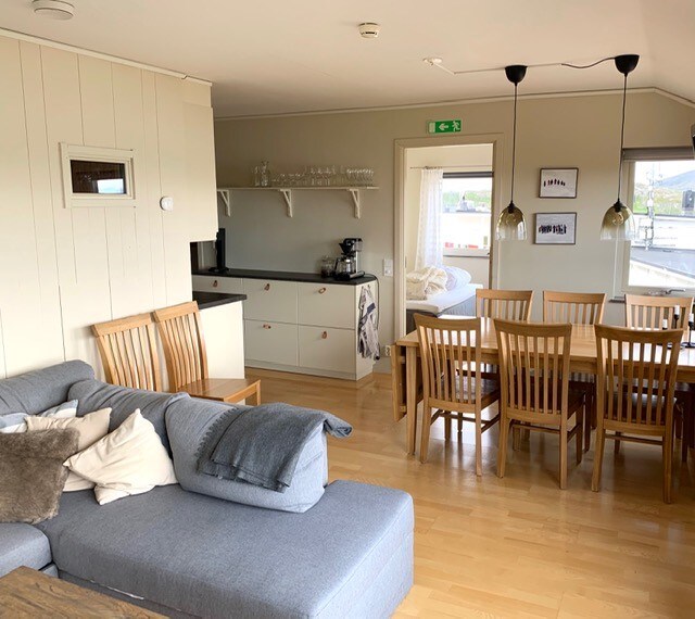 A cosy and fully equipped cabin with a personal touch and a fantastic view. Perfect for couples seeking a romantic getaway or families wanting a comfortable, memorable stay. The stay includes use of 2 pairs of snowshoes, bikes, fishing rods, and high-quality coffee gear. Located right in the heart of the village, the cabin offers both privacy and spectacular scenery. Enjoy the midnight sun in summer and the northern lights in winter — all from the comfort of this modern, welcoming retreat.