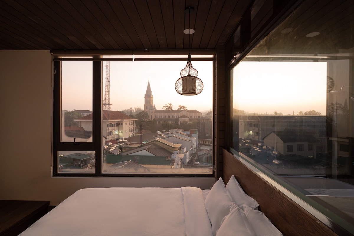 🌲 歡迎來到Penthouse Retreat – Stardome Dalat ! 公寓位於物業的最高樓層,提供絕對的隱私、全套設施和詩意的松樹林景觀。 ✨ •在浴室欣賞樹林的放鬆玻璃浴缸 •漂亮的私人廚房,舒適的木製餐桌 •大型電視、Netflix帳號、強大的WiFi •免費停車位 •面積: 70平方公尺–適合2–4位房客 👉 注意:由於頂層公寓位於頂層,因此需要搭乘電梯到4樓,並需要爬樓梯1樓。