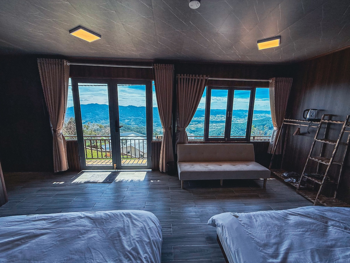 Phòng nghỉ tại Rio Skyhouse mang không gian yên tĩnh và ấm cúng, lý tưởng để tận hưởng sự chữa lành và thư giãn. Cửa sổ lớn hướng ra thung lũng và núi, đón ánh sáng tự nhiên, buổi sáng có thể ngắm mây và bình minh ngay từ phòng. Phòng được trang bị giường rộng, nệm êm, rèm dày, ghế thư giãn và kệ treo đồ. Phù hợp cho cặp đôi hoặc du khách muốn tạm rời nhịp sống ồn ào, tìm lại sự cân bằng giữa thiên nhiên Cầu Đất.