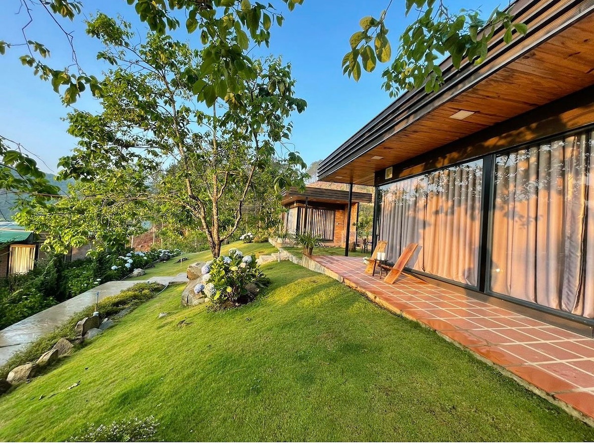 Căn nhỏ bên sườn đồi có 3 phòng ngủ, có mây bay, có hoa thơm, có tiếng chim líu lo mỗi ngày. Không gian rộng rãi và thanh bình này sẽ khiến bạn quên đi những âu lo.