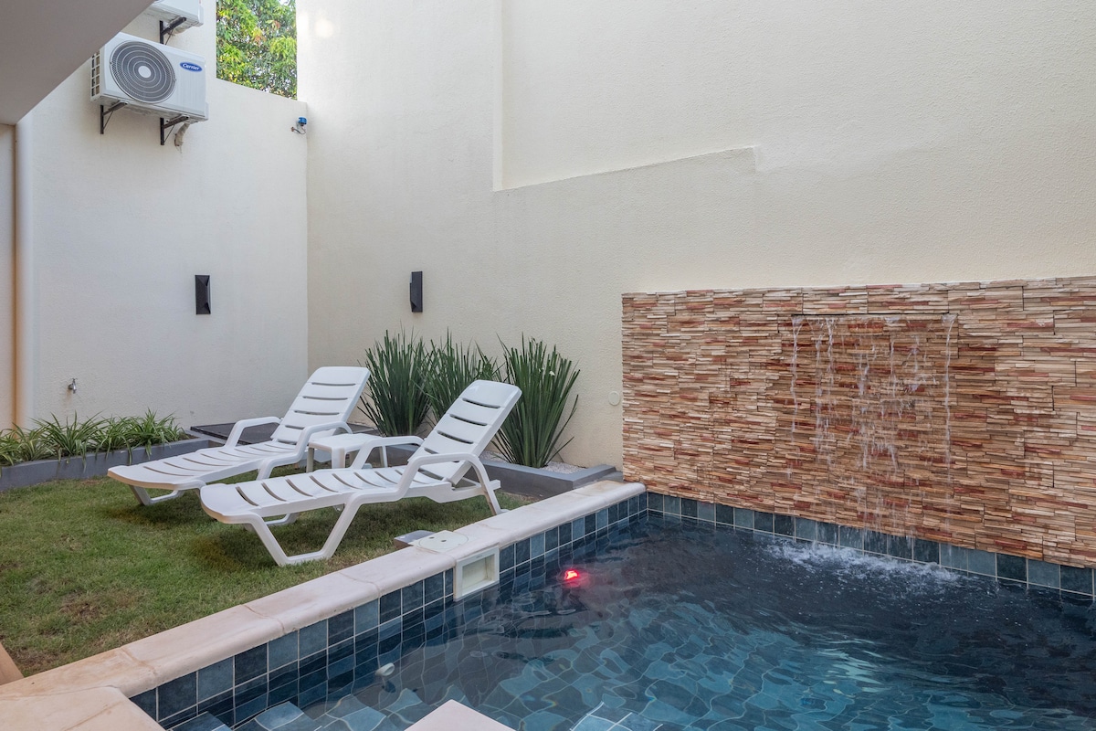 您可以享受這棟現代簡約的房子,位於Las Mercedes和Jara街區之間的最佳位置。 裝潢精美,設備齊全。 有4間房間,最多可容納8人。 私人露臺、泳池和烤肉架是我們提供的一些設備與服務。 在一條非常安靜的街道上,有夜間警衛,距離一切僅幾公尺!咖啡廳、酒吧、餐廳、超市、理髮店、藥店、水療中心。 感覺像一個位於最佳地點的國家!