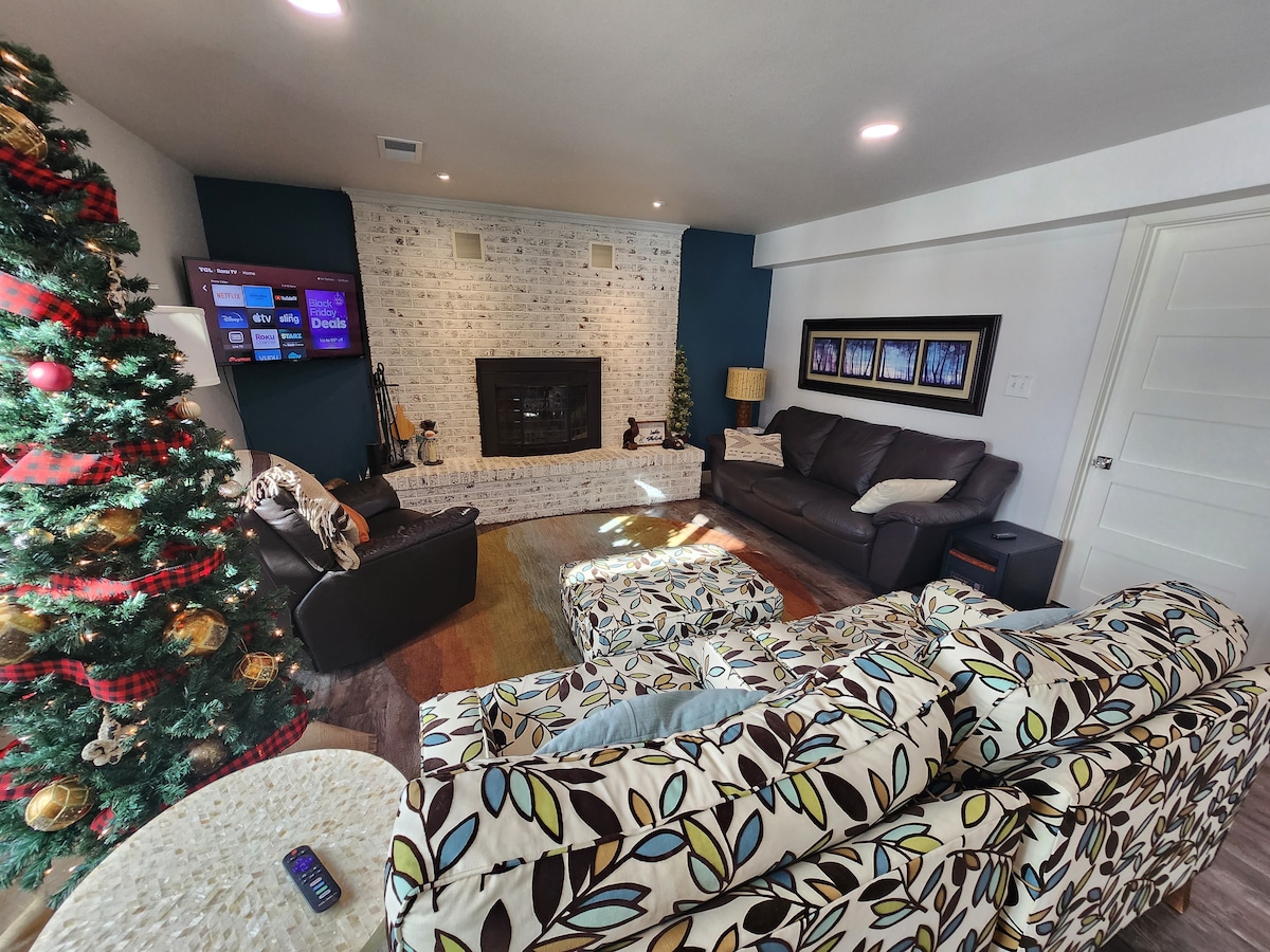 歡迎來到您舒適的家外之家! 這間寬敞舒適的私人地下室套房完美融合了舒適與便利。 此空間非常適合情侶、獨行旅客或商務差旅人士。 享有獨立入口、停車位和安靜的度假勝地,包括: -標準雙人牀 -如有需要,可提供額外的雙人床尺寸的充氣床墊 -專用辦公空間 -設備齊全的小廚房 -配備全套淋浴設施的浴室 -瓦斯壁爐 -智慧電視和Wi-Fi -共用露台