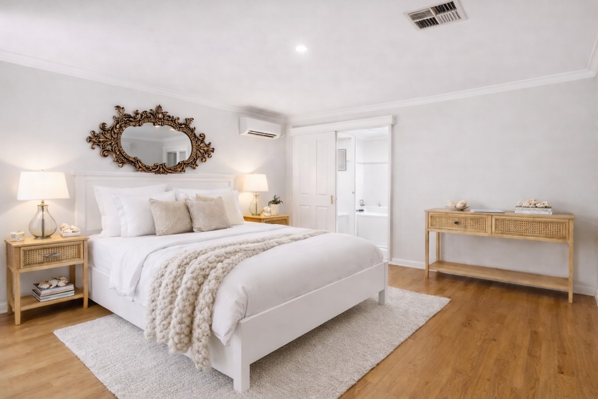 Wake to sweeping ocean views in this tranquil one-bedroom coastal retreat in Quinns Rocks. Comfortably sleeping up to four guests, the space is just 250m from the beach and a short walk to local cafés. Located above the owners’ residence, it offers completely independent and private access, ensuring a quiet, self-contained stay—perfect for couples, small families, or friends seeking a peaceful seaside escape. *Furniture subject to change.