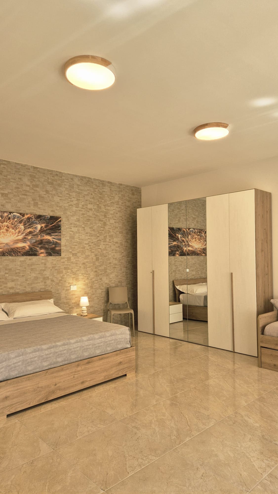 Confortevole e lussuoso appartamento situato all'interno di Palazzo Leone, uno dei due edifici gemelli di architettura razionalista che fanno da ingresso al centro storico della città. La proprietà è dotata di wifi e riscaldamento, è composta da 1 camera matrimoniale con armadio e scarpiera, 1 bagno completo, ampio salotto con divano letto alla francese, tavolo, sedie, televisione, cucina di design dotata di frigorifero, microonde, piastra a induzione, macchina per espresso, e un'ampia terrazza.