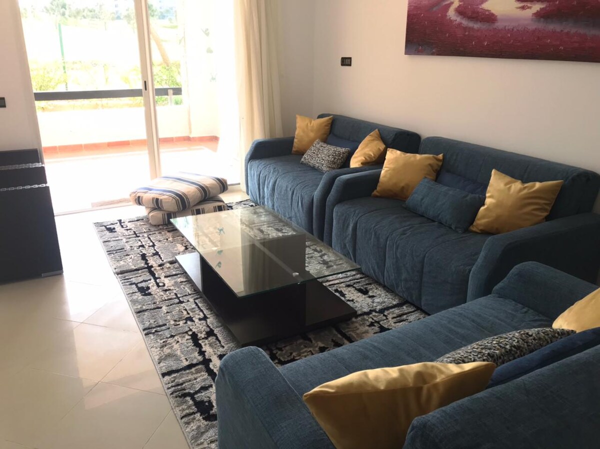 我們位於安全住宅區Marina Golf Assilah的美麗公寓提供兩間臥室、明亮的客廳、兩個露臺、設備齊全的廚房和浴室。 住宅內有幾個戶外泳池、網球場、水上公園、高爾夫球場、餐廳。 附近:舊歷史麥地那(5分鐘)、Rmilate海灘(15分鐘)和Sidi Mghait (30分鐘)、丹吉爾機場(35分鐘)。 非常適合在海邊、高爾夫球場和文化之間度假!