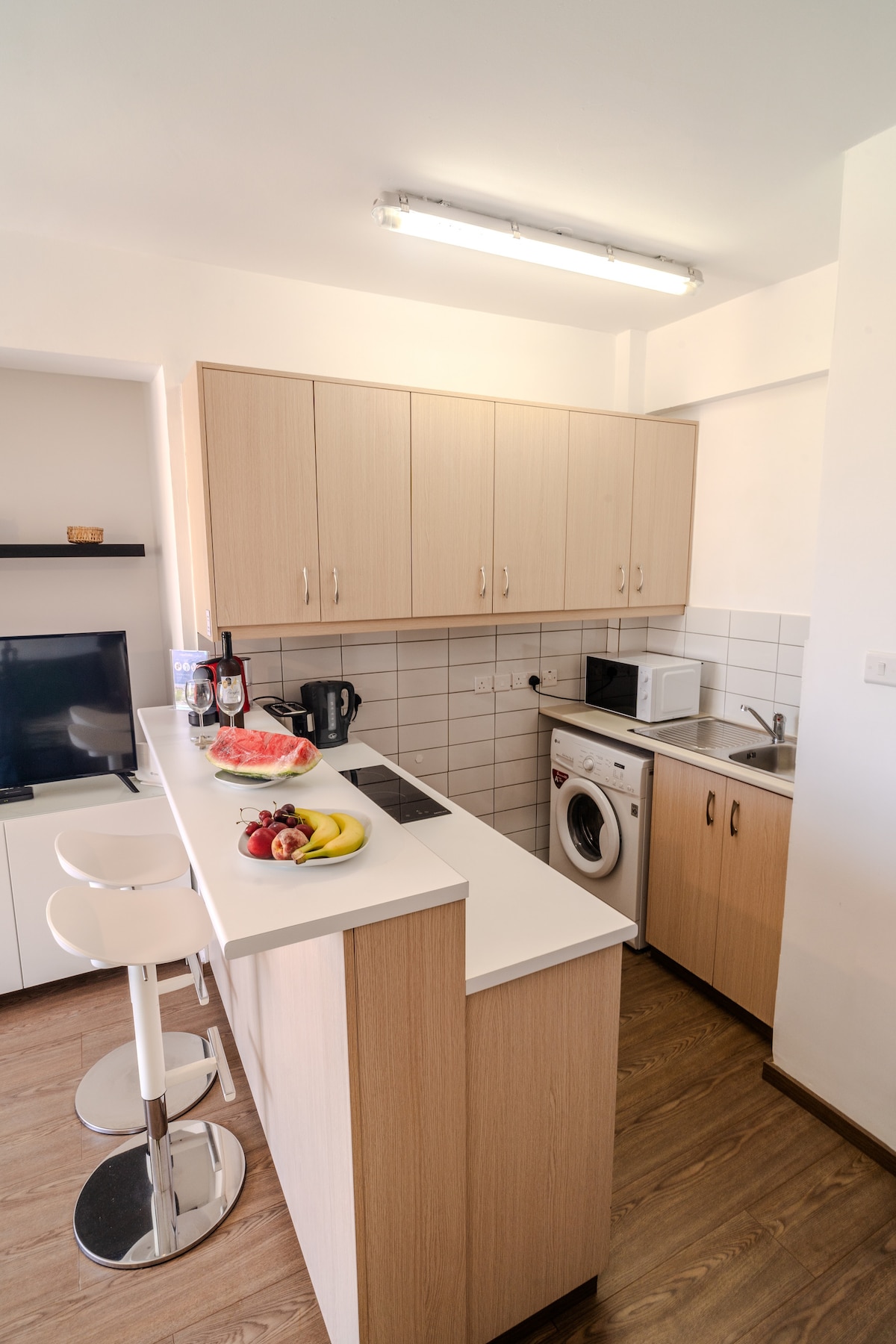 Bright open plan unit with new appliances and granite tops. Clean lines, minimalist in style, with a relaxing feel. Literally 400m to Larnaca central hub - Therefore the Finigoudes beach and promenade being within easy walking distance. Bus service and the central bus station is on the next block from the apartment building. For information on Island Tours, how to get around, taxi services or merely info on how to get from the airport to the location, I am here to assist, please ask.