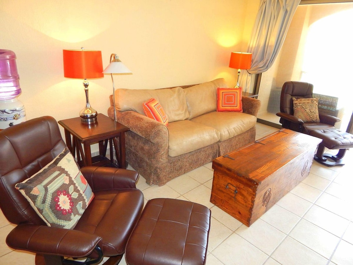 新主人!精心翻新和維護的 2 臥室 2 浴室公寓,最多可入住 6 人,不允許 6 個月以上的兒童入住,位於 Sandy Beach 的豪華 Sonoran Spa 度假村。 (度假村規定:2 間臥室公寓最多入住 6 人,3 間臥室公寓最多入住 8 人。) 請注意,此公寓需要事先的Airbnb評價才能預訂,並且由於露臺欄杆高度低於規定的露臺欄杆長凳高度,因此不允許6個月以上的兒童入住。