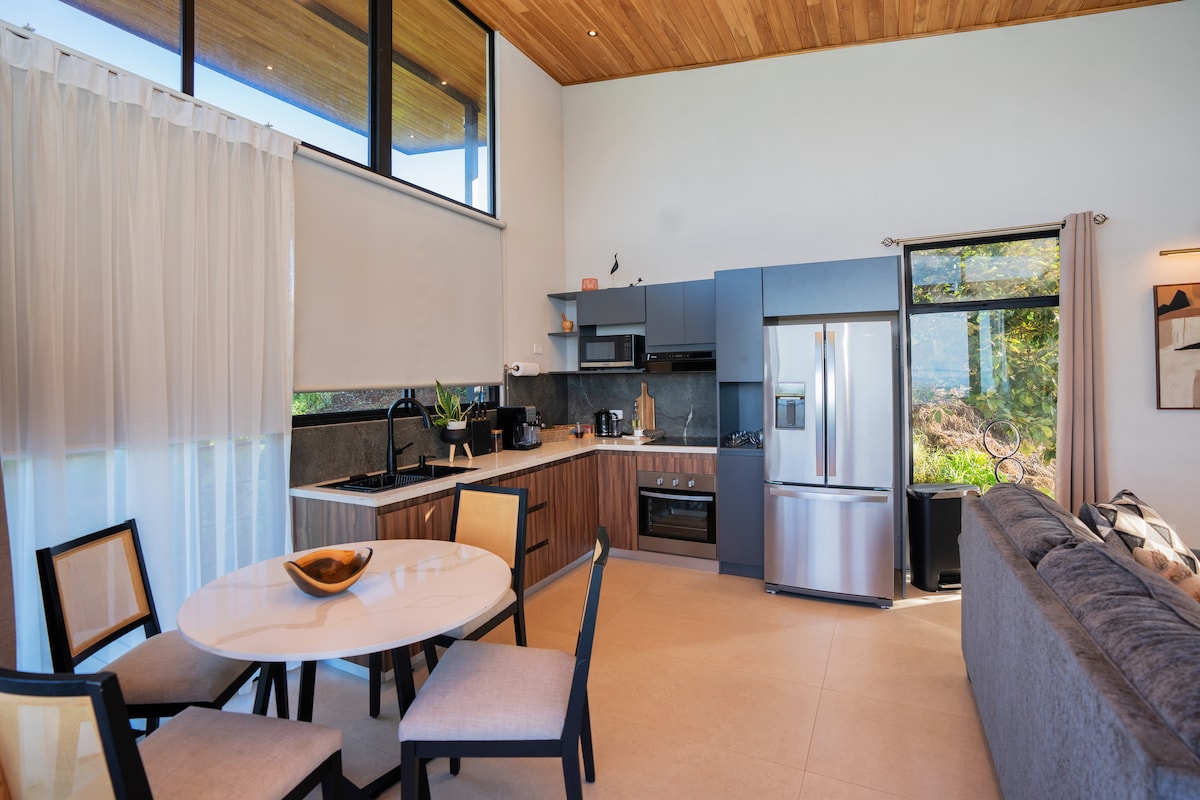 在森林上空的三角屋別墅中醒來,現代設計與山間寧靜在此交融。 這間由建築師設計的房源位於蒙特韋爾德的 Sukha Monteverde,坐落在聖埃琳娜的茂密樹冠下,完美結合舒適、風格和靠近哥斯大黎加的頂級雲霧森林景點 無論您是想探險、尋找浪漫或是享受寧靜,這間優雅的三角屋小木屋都能讓您在這個地球上生物多樣性最豐富的地區之一,獲得難忘的體驗