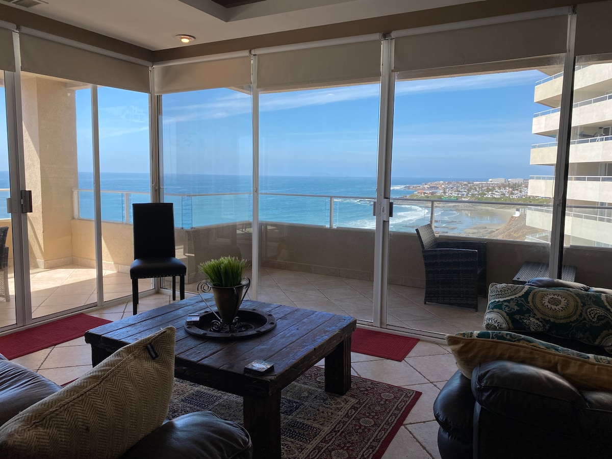 Located in one of the few corner units offering cross breezes and panoramic views unlike most other units that overlook nothing but the horizon. These extraordinary views include overlooking fisherman's village and a beautiful view of the Coronado islands also known as the "Islas de Hipopotimo" for its unique topography. When the sun sets, you will enjoy the most beautiful multi-colored skies. The community is very friendly and hospitable, lay back and a safe guarded property.